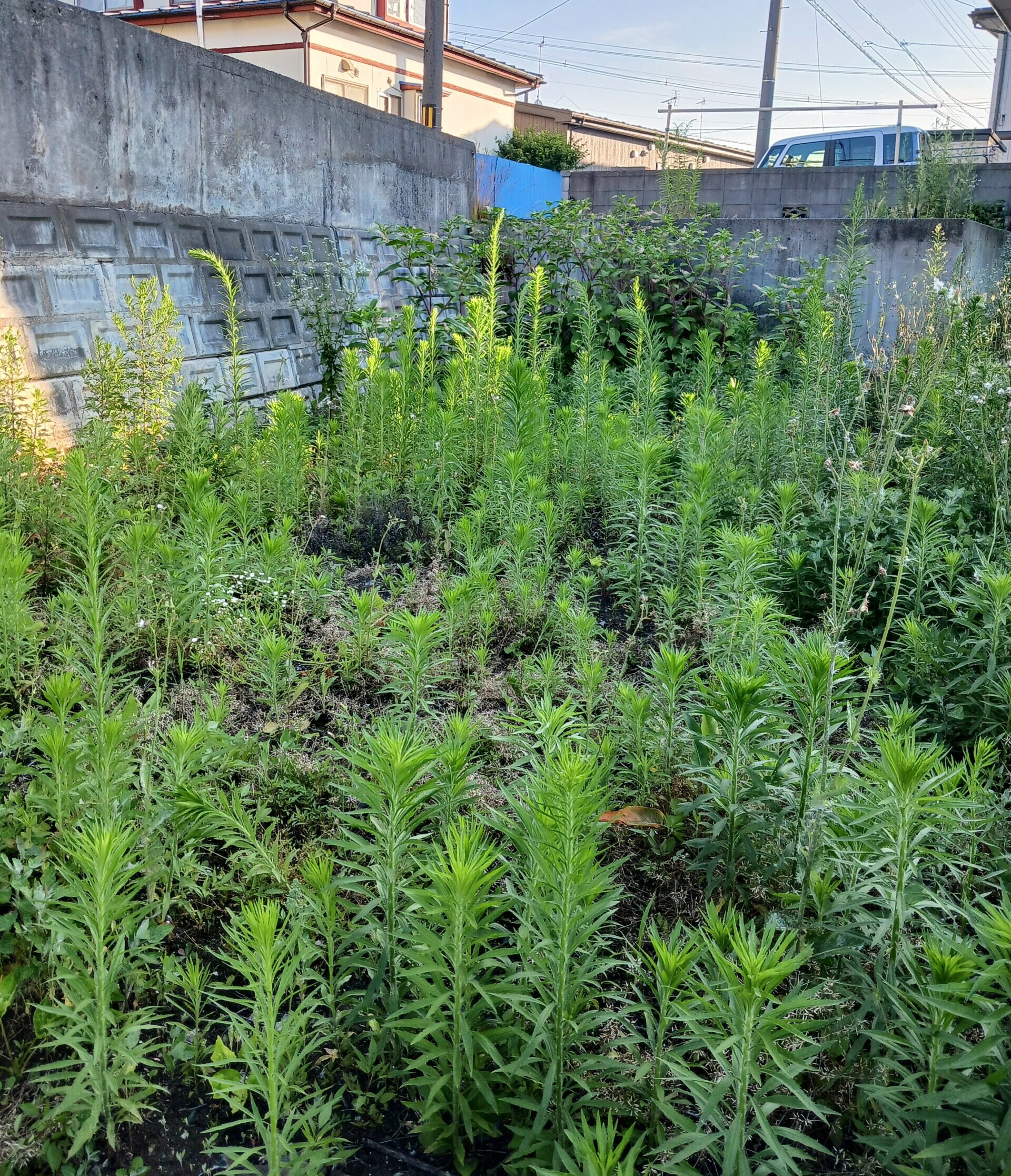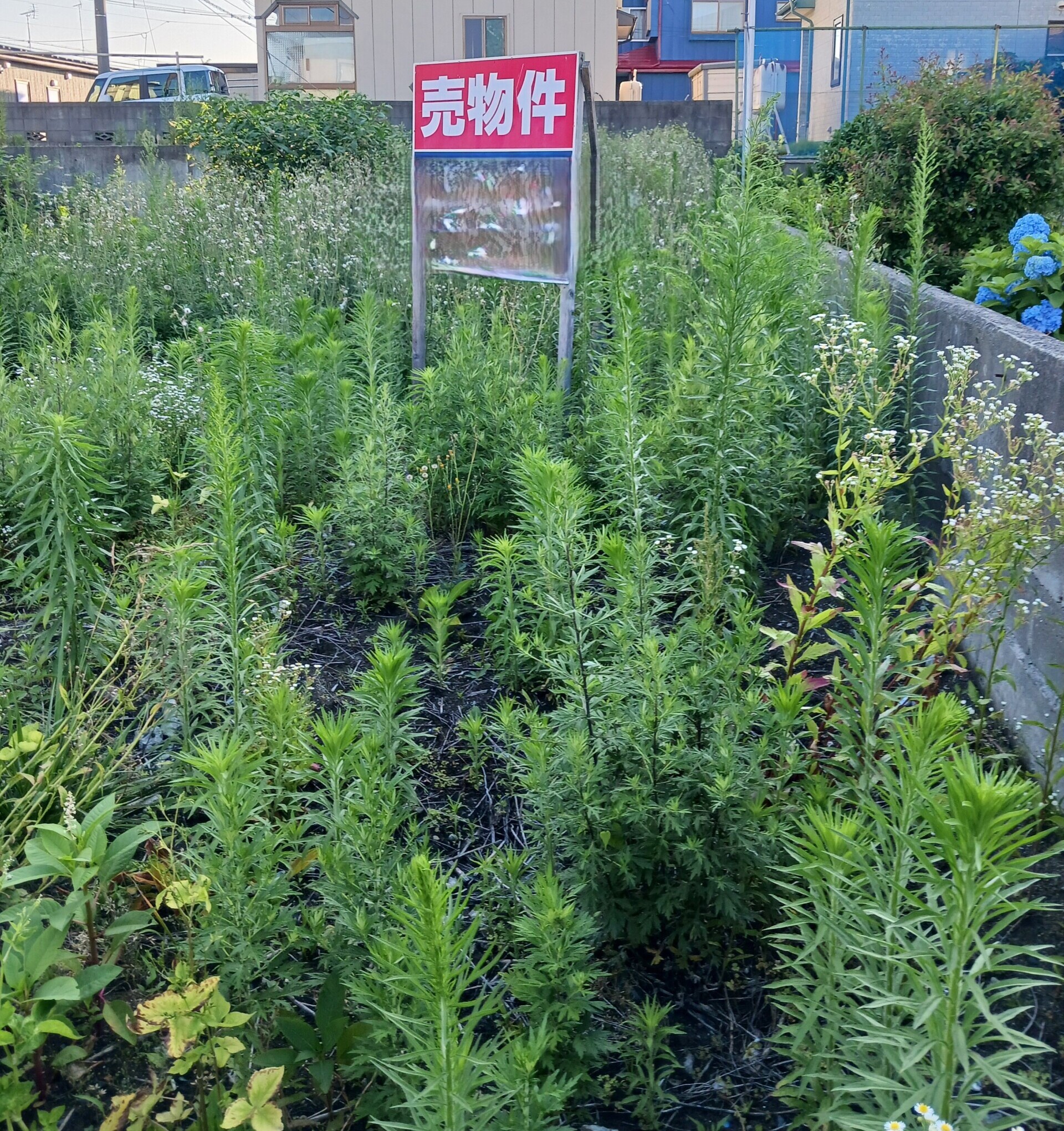 売地の草刈りビフォーアフターです。 最後に除草剤を散布して、草がなくなりきれいになりました。